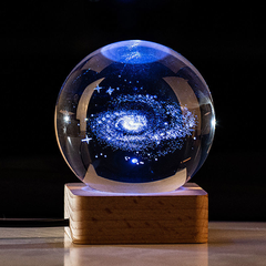 初凝(CHUNING)教师节生日礼物女生送女友男生星空水晶球定制小夜灯摆件纪念台灯 木底座6厘米七色款银河系