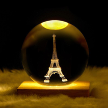 初凝(CHUNING)教师节生日礼物女生送女友水晶球星空投影小夜灯纪念定制男生摆件 木底座6cm铁塔